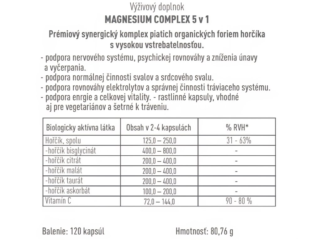 Výživový doplnok MAGNESIUM COMPLEX 5 v 1.